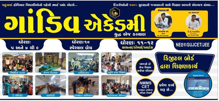 - તેથી તમારે બોર્ડની પરીક્ષામાં તમને મદદ કરવા માટે અને એક અભ્યાસક્રમ દરમિયાન સતત માર્ગદર્શન મેળવવા માટે આજે જ Gandiv-academy ની મુલાકાત લ્યો.
